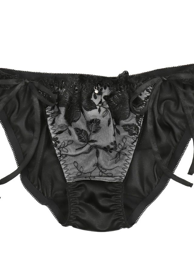 個性派刺繍ランジェリー♪ オリエンタル刺繍デザイン脇高カップブラジャー&ショーツセット(ブラック)(A~F/65~80)