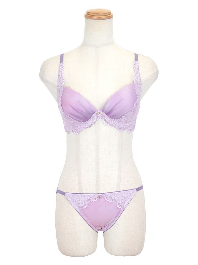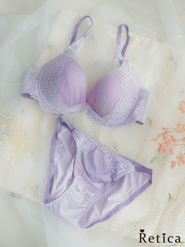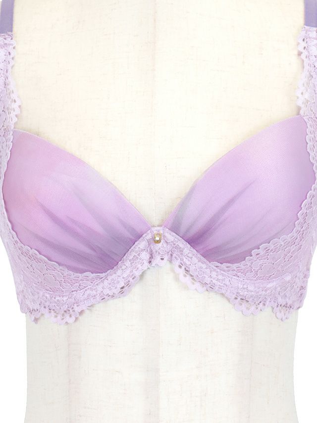 夢見るシアーの透明感♡ グラデシアーレイヤードチュールカップブラジャー&ショーツセット(ラベンダー)(A~F,65~80)