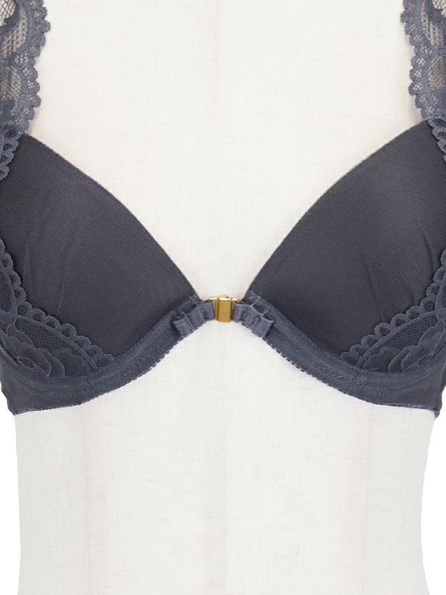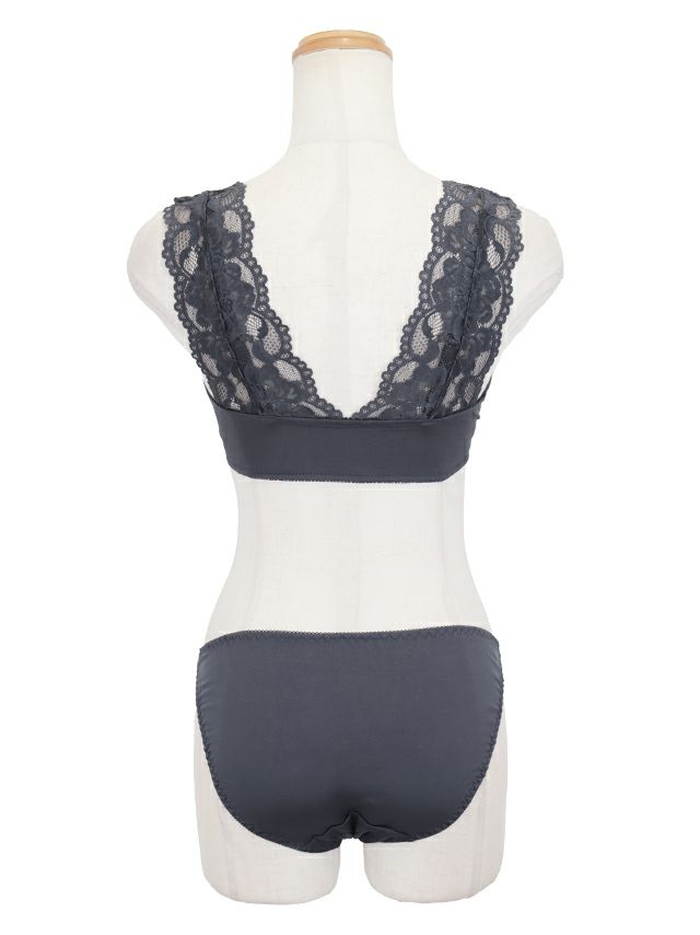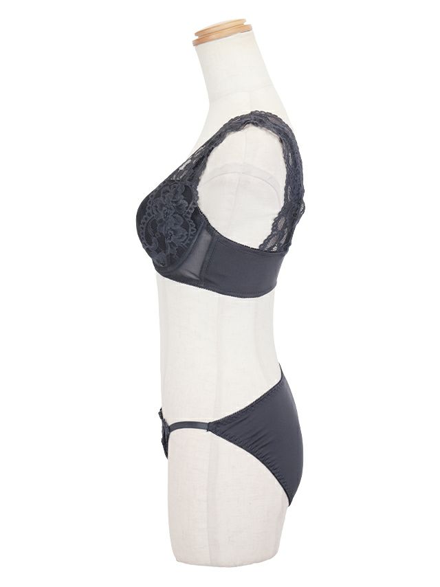 品のある大人の雰囲気に♡ ストラップレースフロントホック脇高カップブラジャー&ショーツセット(チャコールグレー)(A~F,65~80)