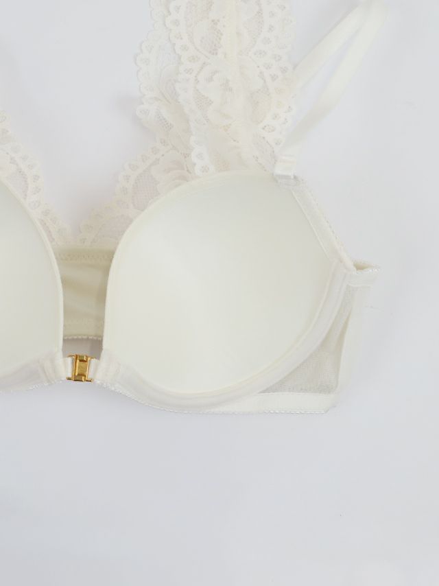 品のある大人の雰囲気に♡ 幅広レースフロントホック脇高カップブラジャー&ショーツセット(アイボリー)(A~F,65~80)