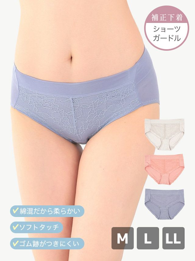 控えめレースでフェミニンに♪ [SALE] シンプルレースデザインローレッグショーツ★(グレー/ブルー/ピンク)(Mサイズ~XLサイズ)
