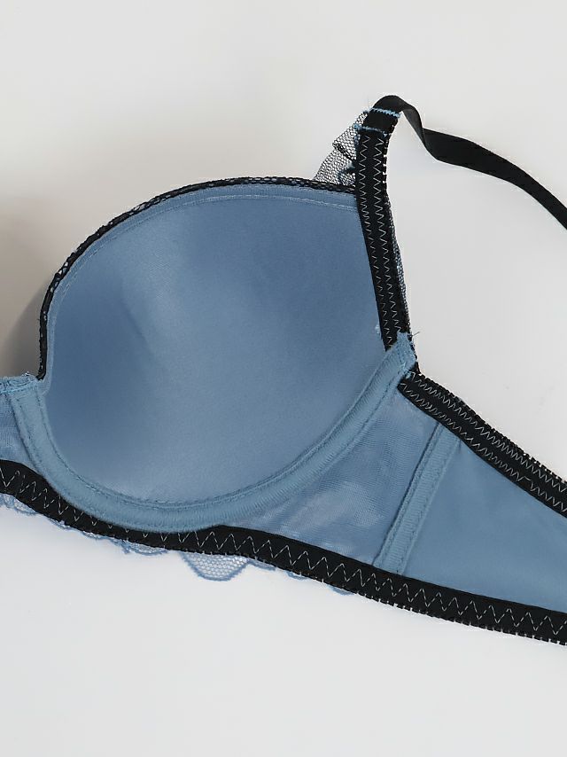 女の子らしい清楚ランジェリー♪ シアーフラワー刺繍カップブラジャー&ショーツセット(ブルー)(A~D/65~80)