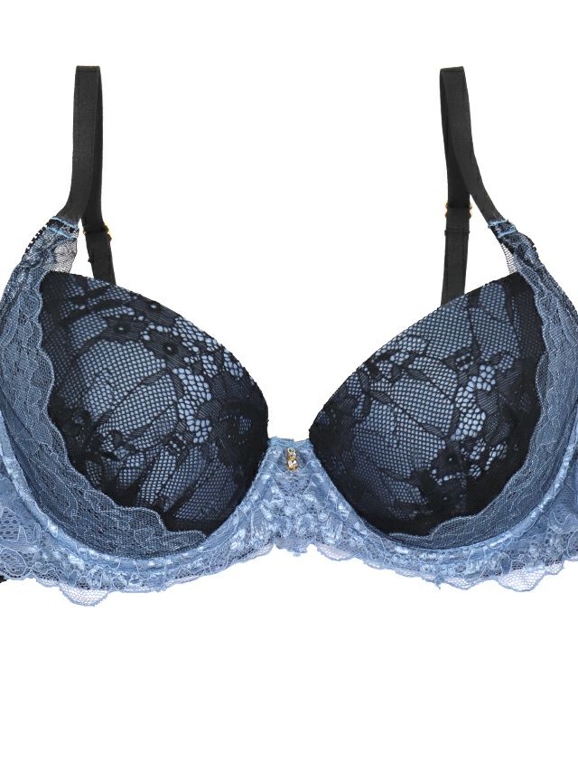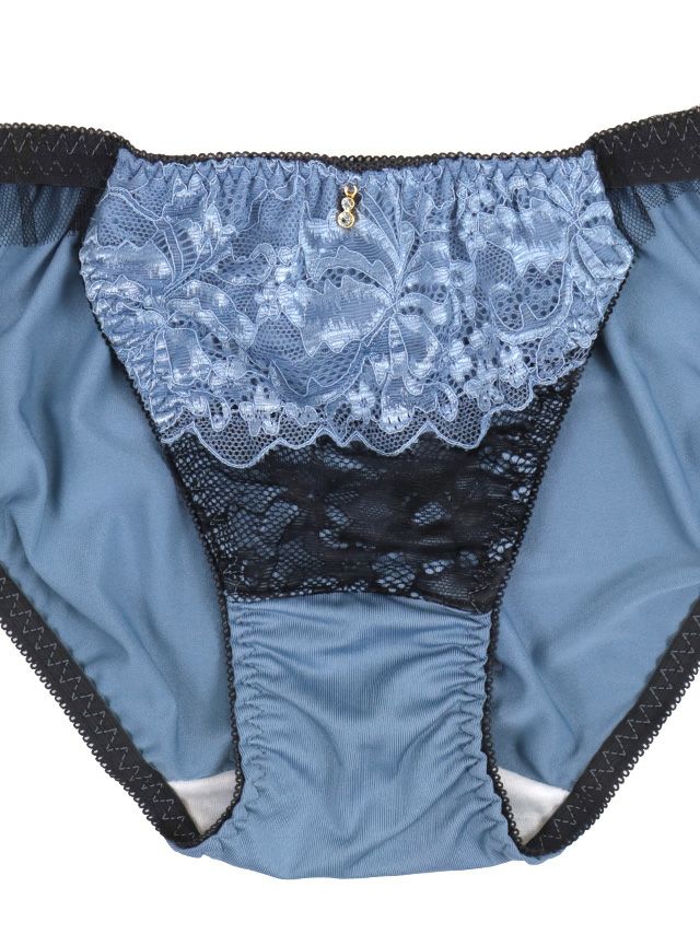 サイドオープンなデザインでフェミニン♪ ビジュー付きカットアウトランジェリー(オールドブルー)(B~D/65〜75)