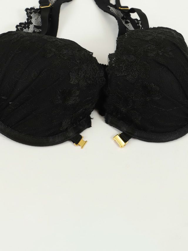 イイ女になれちゃう大人ランジェリー♪ ローズ刺繍レースフロントホック脇高カップブラジャー&ショーツセット(ブラック)(A~F/65~80)