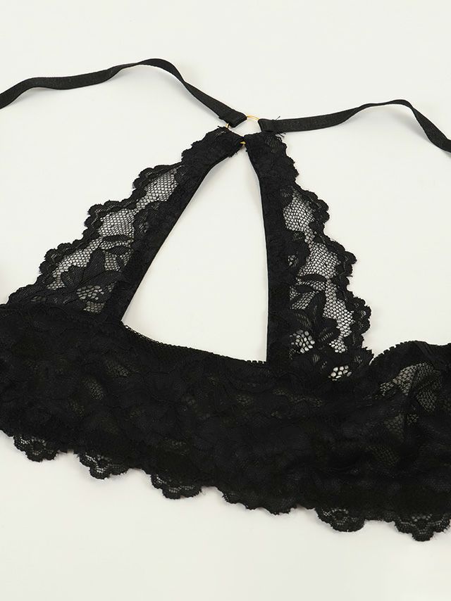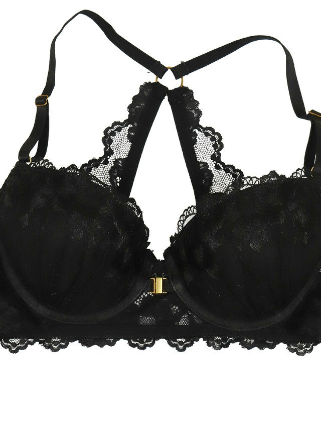 魅惑的なバックデザインランジェリー♪ バックシャンレースフロントホックブラジャー&ショーツセット(ブラック)(A~D/65~80)