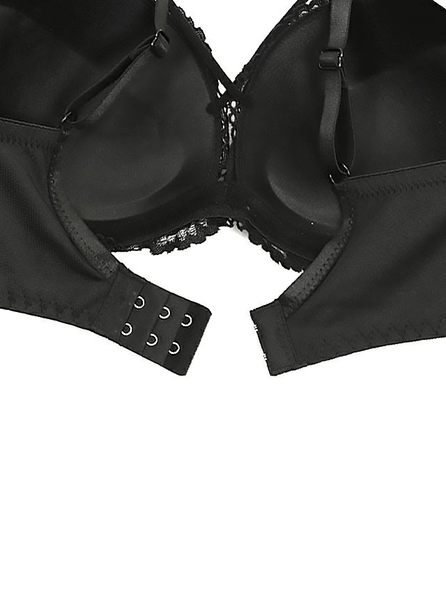 男心惑わすセクシーランジェリー♪ ビジュー付きブラックレースカップブラジャー&ショーツセット(ブラック)(A~F/65~75)